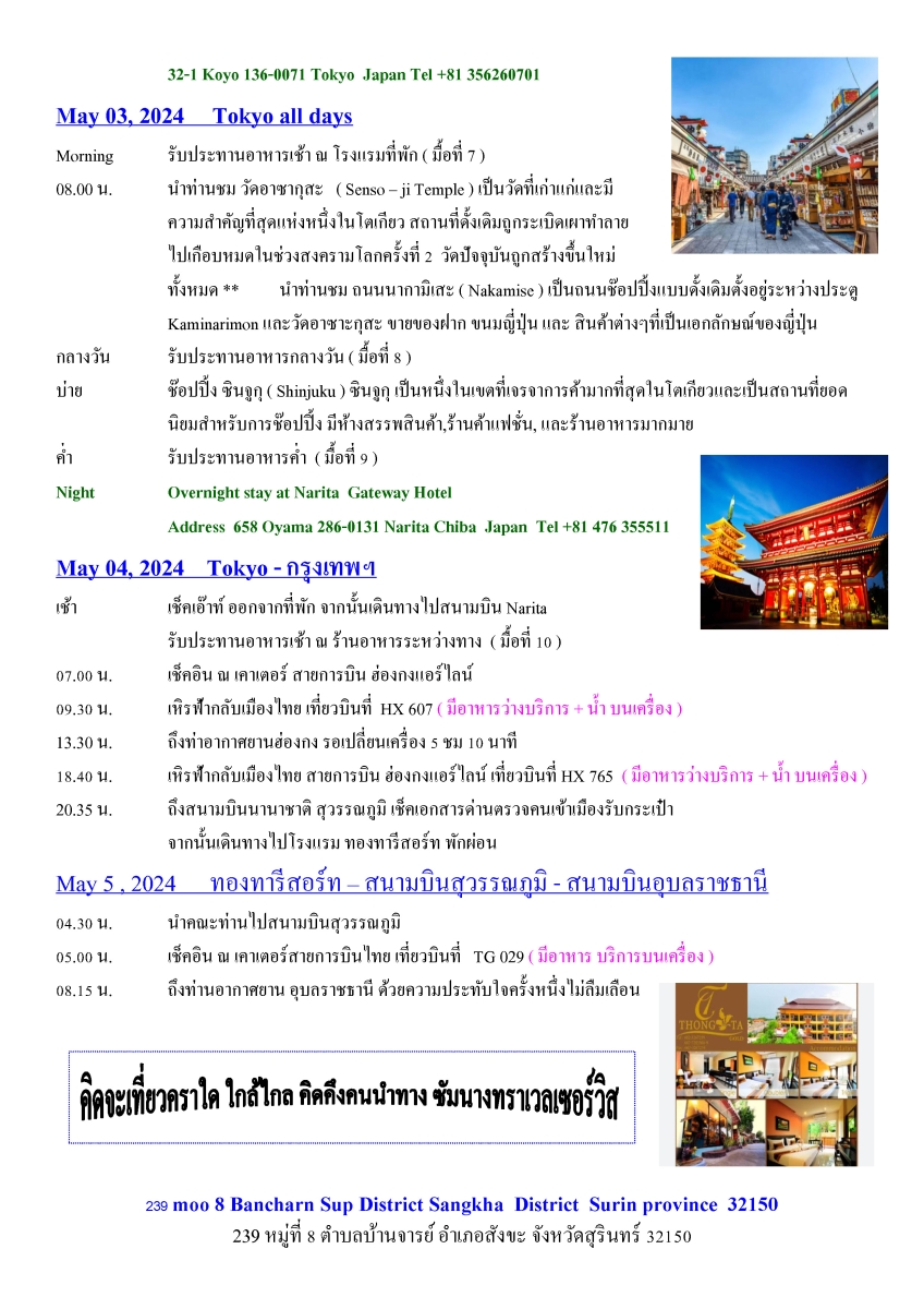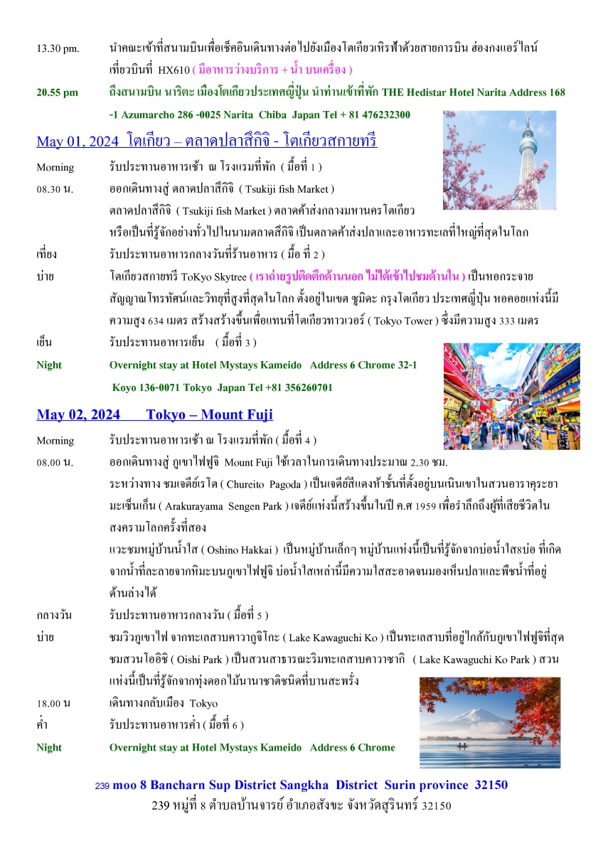 โปรแกรมทัวร์ 7 วัน 6 คืน Bangkok - Japan - Hongkon..
